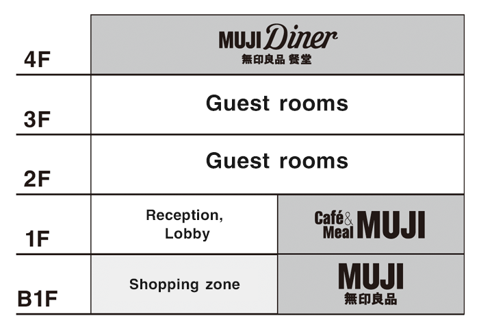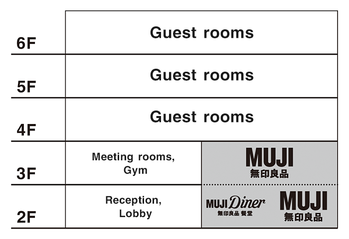 The second floor of the same building will also host a MUJI Diner. Guests of the hotel will have access from breakfast through dinner, with a bar available during certain hours. A brand new MUJI store on the second and third floors will begin operation on the same day of the hotel opening, aiming to help customers experience the world view of MUJI.