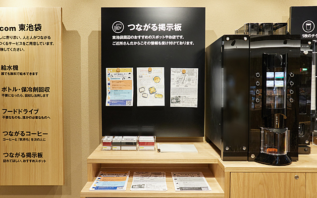 The "Community Connecting Space" will be set up to "connect with local shops and people" by introducing local shops in the Ikebukuro area, displaying a map showing information on each shop, and selling representative products of the shops.