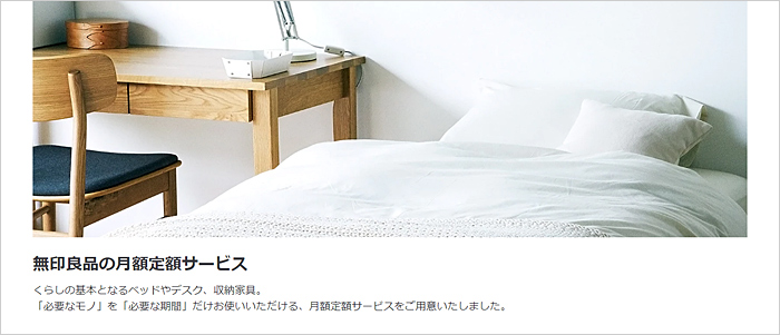 The "Monthly Flat-rate Service" (launched in January 2021) allows customers to use MUJI furniture at an affordable fixed monthly price for the necessary period only. By utilizing this service, customers can use the furniture instead of spending a lot of money purchasing them, and at the end of the term, customers can choose to purchase these items at their own wish.