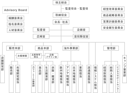 - 生活雑貨部門の業績回復を早期に確実なものにするため、従来、商品分野ごとに2つに分かれていた組織を統合し、迅速かつ効率的な運営を行う。