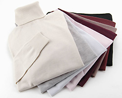 | カシミヤファインゲージ 天竺タートルネックセーター | ベージュ、ラベンダー、ライトグリーン、ライトグレー、 茶、エンジ、ボルドー、黒 | 婦人 S・M・L | 9,345円 |