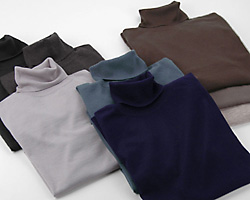 | カシミヤファインゲージ 天竺タートルネックセーター | 杢ベージュ、カーキ、杢チャコールグレー、黒、グレー、 ブルー、杢カーキ、紺 | 紳士 M・L・XL | 10,290円 |