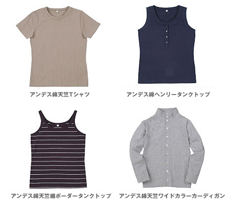 | アンデス綿天竺ヘンリータンクトップ | 1,995円 | |||