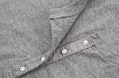 ヘンリーネックの前開きの合わせ部分に布帛を貼り、ボタンの開け閉めを繰り返してもへたりにくくなっています。