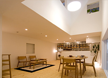 「窓の家」の大きな特徴としては、家を暮らしから考えているということです。毎日の暮らしをより豊かにするための大事な要素として考えたのが「窓」です。「窓の家」は必要な場所に必要な大きさの窓を配置します。絵画を見るように風景を窓で切り取って見る、例えば昔の茶室のように床の近くの地窓からみる坪庭の風景や、高窓から見える雲の断片。それらはピクチャーウインドウとして気持ちのいい空間を演出してくれます。