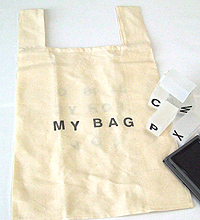 「マイバッグで素敵なお買い物」を提案する無印良品が、2006年4月に発売いたしました布製マイバッグは、シンプルなデザイン、わかりやすいサイズ展開と価格(B5ワイド50円、A4ワイド70円、A3ワイド100円)、売場にご用意した40種類以上のスタンプでお客様に自由に自分の「印」を付けていただけるという点がご好評をいただき、発売以来160万枚を売り上げる大ヒット商品となりました。この結果が評価され、無印良品を取り扱うコンビニエンスストア、ファミリーマートから自社のマイバッグを共同開発したいという申し出をいただきました。今回開発されたマイバッグは、布製マイバッグと同様、無印良品全店にて発売され、売場にご用意したスタンプにて自分の印をつけることができます。