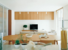 大きなダイニングテーブルでは、食事だけでなく、家族が集まる掛け替えのない豊かな時間が生まれます。 - 子育てを大切に考えた家です。