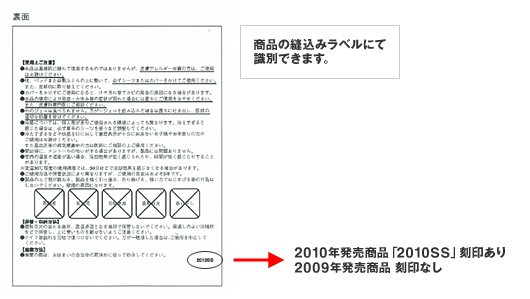 2009年度発売品「このままで使える敷くだけひんやりジェルシート」と2010年度発売品「ひんやりジェルシート」の識別方法