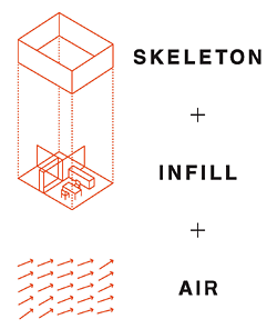 無印良品の家のコンセプト「永く使える、変えられる」を実現する「スケルトン」+「インフィル」に加えて、全棟温熱シミュレーションするしくみを「+AIR」と名付けました。