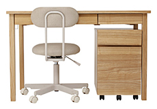 - タモ材デスク・キャビネット・ワーキングチェアセット