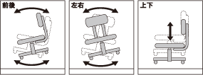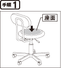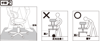 ※チェアをゆする際、高く持ち上げずに、腰をかがめた位置でゆすってください。万が一脚部が外れた場合、床を傷つけたり足に落下し、けがをする恐れがありますので十分ご注意ください。
