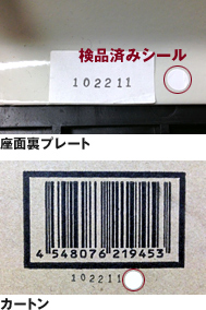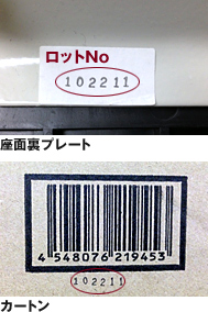 ワーキングチェア座面裏側プレートに貼付のロットNoは、「102211」です。