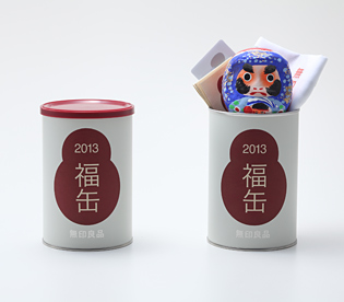 北海道・東北・関東地方で昔から親しまれている手づくりの縁起物1種類と、2013円分がチャージされたMUJI GIFT CARD、てぬぐいが入った「福缶」(税込2013円)を、2013年の初売りより数量限定で販売します。