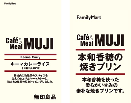 ファミリーマートが10月に発売した「Café&Meal MUJI」監修の第1弾商品のカレーライス弁当(「バターチキンカレーライス」、「辛口グリーンカレーライス」)は、その本格的な味が支持され、ファミリーマートのチルド弁当部門でも常に上位にランクインする人気商品となりました。今回はその第2弾として、無印良品のレトルトカレーの中でもバターチキンカレーなどに続く人気の“キーマカレー”と、「Café&Meal MUJI」で人気の高いデザートメニュー“焼きプリン”をイメージした2種類のオリジナル商品が発売されます。