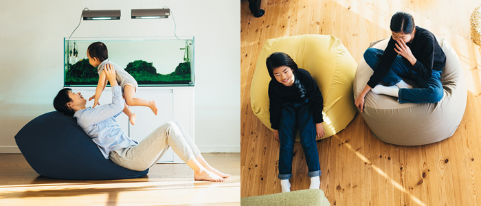 クッション材に使用されているのは、約0.5mmの微粒子ビーズ微粒子。へたりにくく、座り心地も非常にやわらかです。カバーには、ストレッチ素材の面と帆布素材の面があるので、クッションの置き方を変えることで、異なる座り心地をお楽しみいただけます。2014年には、その心地良さがインターネット上で話題になり、年間10万個を売り上げる大ヒット商品となりました。更に同年秋には、息の長い人気が評価され、2014年グッドデザイン賞ロングライフデザイン賞を受賞。