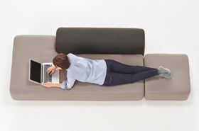 「待ち時間の長い空港で旅する人たちに快適さをお届けしたい」というご要望を受けて開発された「ソファベンチ」。