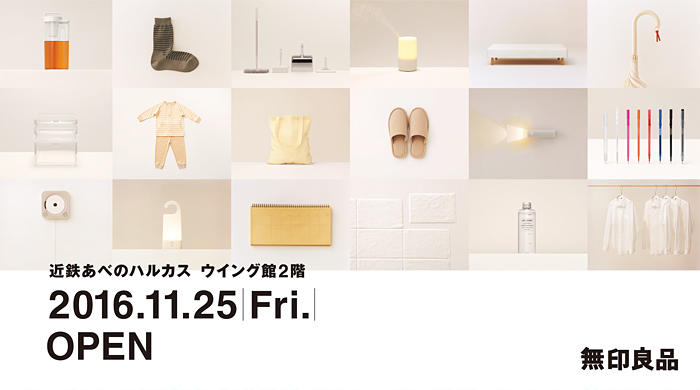 株式会社良品計画(東京都豊島区/代表取締役社長 松﨑 曉)は、2016年11月25日(金)、日本一の高さを誇る超高層複合ビル「あべのハルカス(大阪府大阪市)」の中核施設である「あべのハルカス近鉄本店」のウイング館2階に、大型店「無印良品近鉄あべのハルカス」をオープンします。1500m2を超える広い店内には無印良品最大級の「食」をテーマとした売場で新しい商品カテゴリーやサービスを導入、併設する「Café&Meal MUJI」も環境やメニューを刷新します。幅広い品揃えとサービスを充実させながら、ゆったりとくつろげる空間を通して、最新の無印良品をご提案いたします。