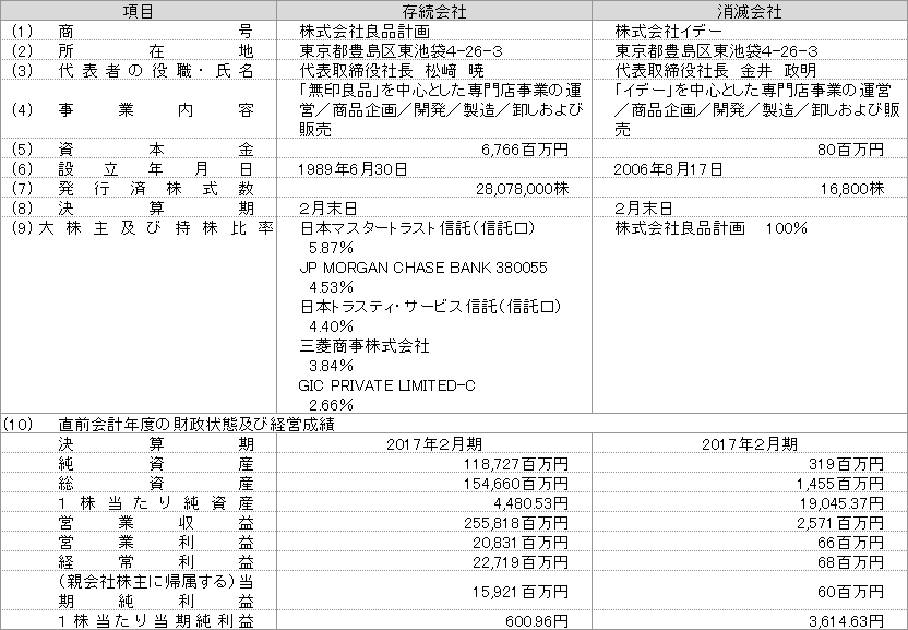 ※本合併は、当社においては会社法第796条第2項の規定に基づく簡易合併であり、株式会社イデーにおいては会社法第784条第1項の規定に基づく略式合併であるため、いずれも合併契約承認の株主総会は開催いたしません。
