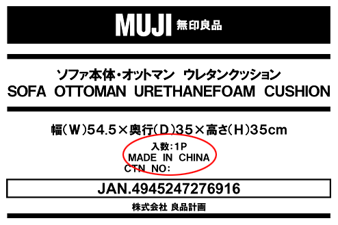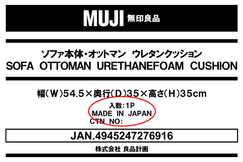 この度、弊社が販売いたしました「ソファ本体・オットマン・ウレタンクッション」において、実際の商品は原産国が中国にも関わらず、外箱の梱包表記に「MADE IN JAPAN」と誤って表記しておりました。事実と異なる表記をしておりましたことを深くお詫び申し上げます。尚、本体に貼付の検査表及び組立・取扱説明書、ネットストアには正しい原産国を表記しております。
