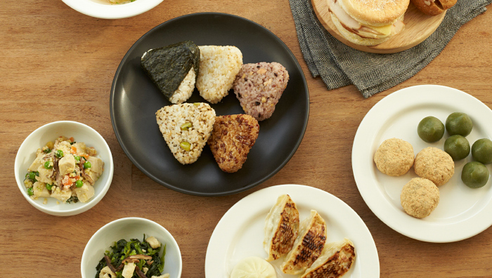 - 玄米や雑穀米をつかった国産米おにぎりなどの「素材を生かした世界のごはん」