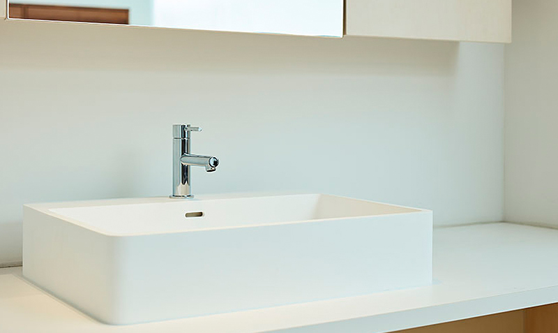 MUJI HOTELで採用された無印良品オリジナルの洗面器を採用しています。表面は落ち着きのあるマット仕上げ、エッジを薄くしながらも、柔らかい曲線が美しい無印良品らしいシンプルなデザインです。
