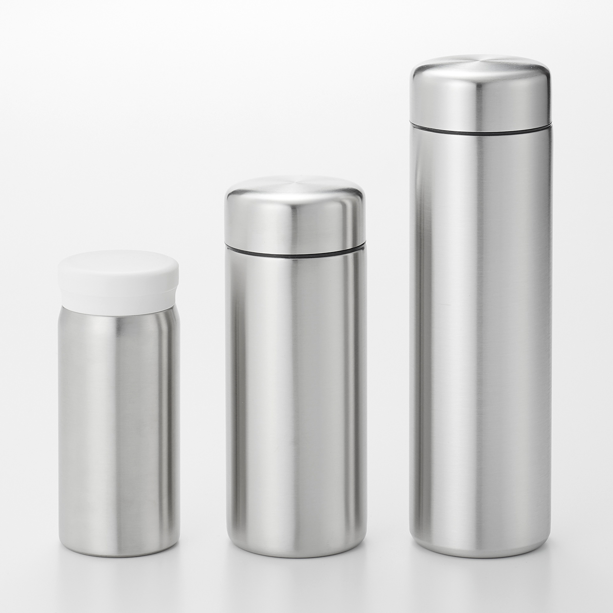 保温性、保冷性に優れた「ステンレス保温保冷マグ」のラインナップに、200mlサイズが新たに加わりました。直径が約6cmと持ち運びやすく、どなたでも開けやすいサイズです。また、真空二重構造により結露の発生を抑えます。既存の350ml、500mlと合わせた3サイズの中から、使う方のライフスタイルや給水の頻度に応じて選ぶことができます。お好みのドリンクを入れて楽しむことはもちろん、無印良品各店舗の給水サービスでもぜひご利用ください。