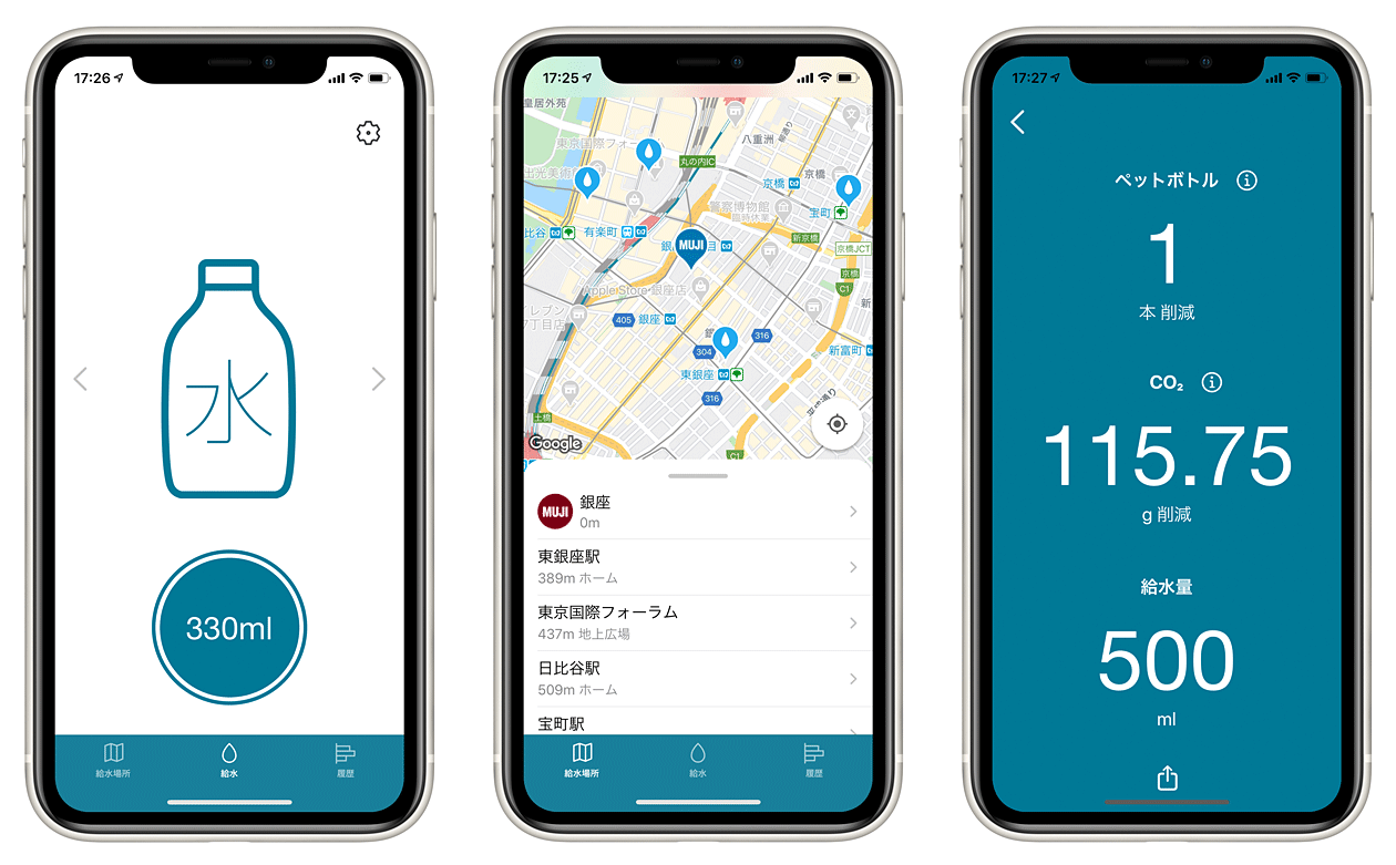 このアプリでは、ご自身の給水量や、給水することで削減できるPETボトルの廃棄量およびCO₂排出量を可視化します。また、給水機を設置している無印良品店舗の位置情報のほか、東京都水道局が「Tokyowater Drinking Station」として紹介する、公共施設など都内約700箇所以上の給水スポットを掲載予定です。今後も各自治体の情報を含めた給水スポット情報の充実を図り、お客様の役に立つアプリとなることを目指します。