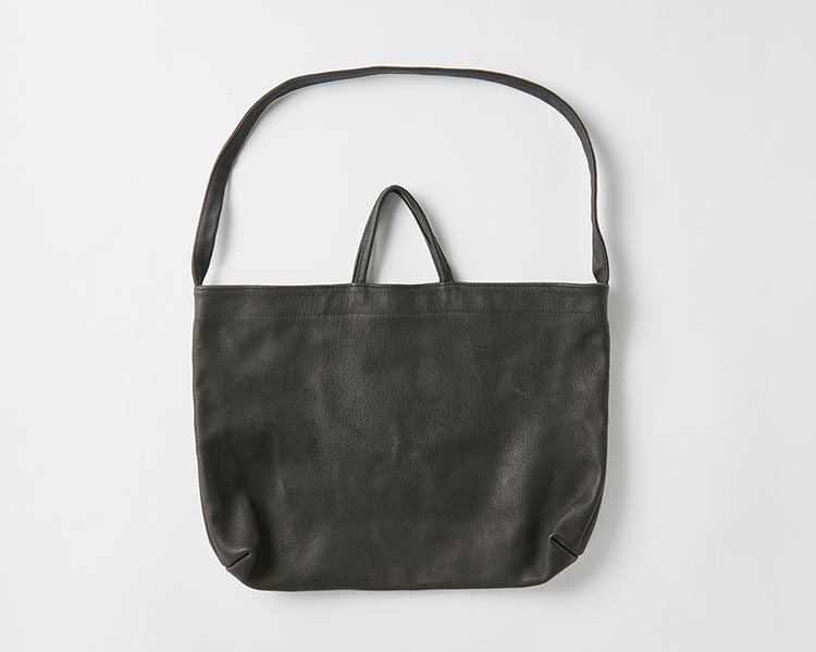エコレザーを中心に、自社のアトリエで一つひとつ手作業で製作されたレザーアイテムです。洗いをかけたピッグスキンは柔らかさと、独特のシワを生み出しています。天然素材のため、1点ずつ表情が異なるのも、レザーという素材ならではです。