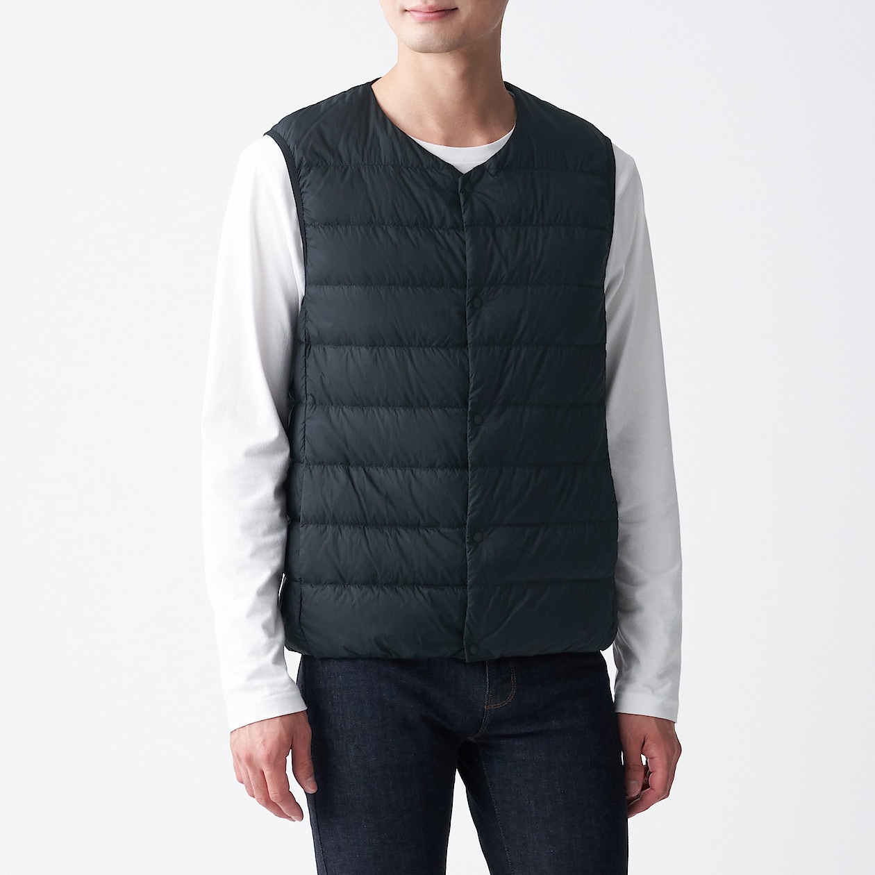 軽量ポケッタブルノーカラーダウンベスト(紳士)