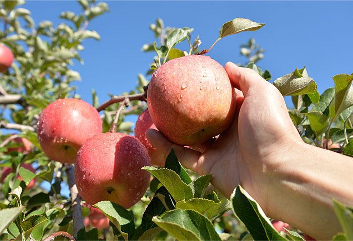 りんごを赤くするための葉をとる作業や傷や色などで選別する作業を省きました。見た目は不揃いですが、おいしさは変わりません。