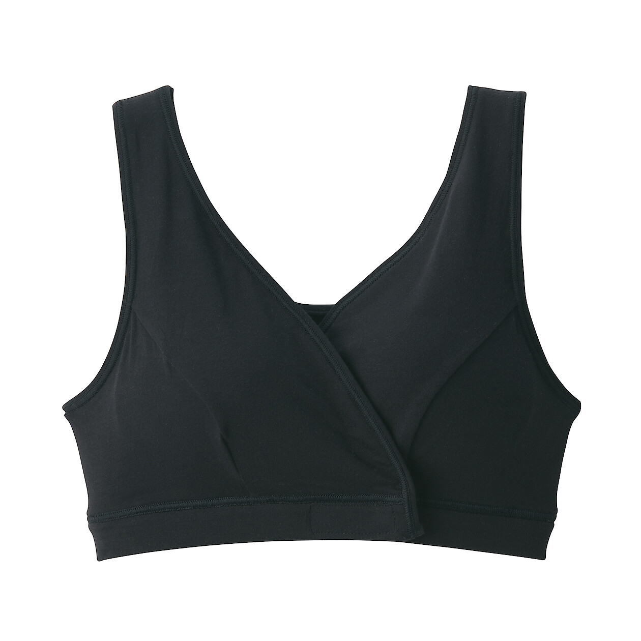 フロント部分のスナップボタンでアンダーバストを丁度よいフィット感を調節することができます(スナップボタン:上側2個、下側3個)。カシュクールタイプなので妊娠期や授乳時にも使いやすくなっています。婦人インナーの「なめらか」シリーズと同じリヨセルを使った、肌あたりがやわらかい素材です。モールドカップが差し込み式なので、お手持ちのカップとの付け替えや、カップ無しで使用することもできます。