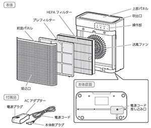 (HEPAフィルターは1日24時間稼働で約1年の交換目安となっております。)