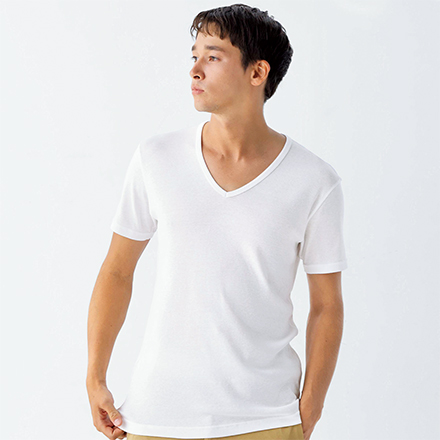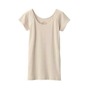 - 吸放湿性を高めた綿を一部含む、綿100%使用を継続し、より肌離れのよい生地に仕上げました。汗取りパッドがついたTシャツを新たに追加します。カラー展開では、薄手や白色のトップスの下に着てもインナーが目立ちにくいベージュカラーを追加しました。